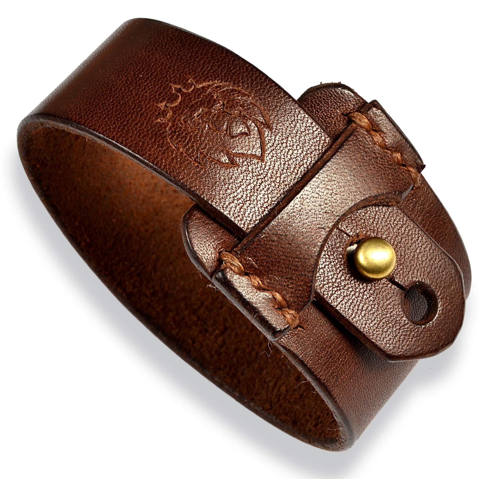 Bratara este lucrata manual din piele naturala de culoare maro cu grosime de 1,5 mm. Inchiderea se face cu nasture metalic cu surub.Este reglabila. Marginile au fost finisate manual cu ceara. Cusaturile sunt facute manual cu ata cerata de 0,6 mm de culoare maro deschis.   Poate fi un cadou ideal pentru barbati. Calitatea pielii si a accesoriilor fac din aceasta bratara un produs rezistent si original.