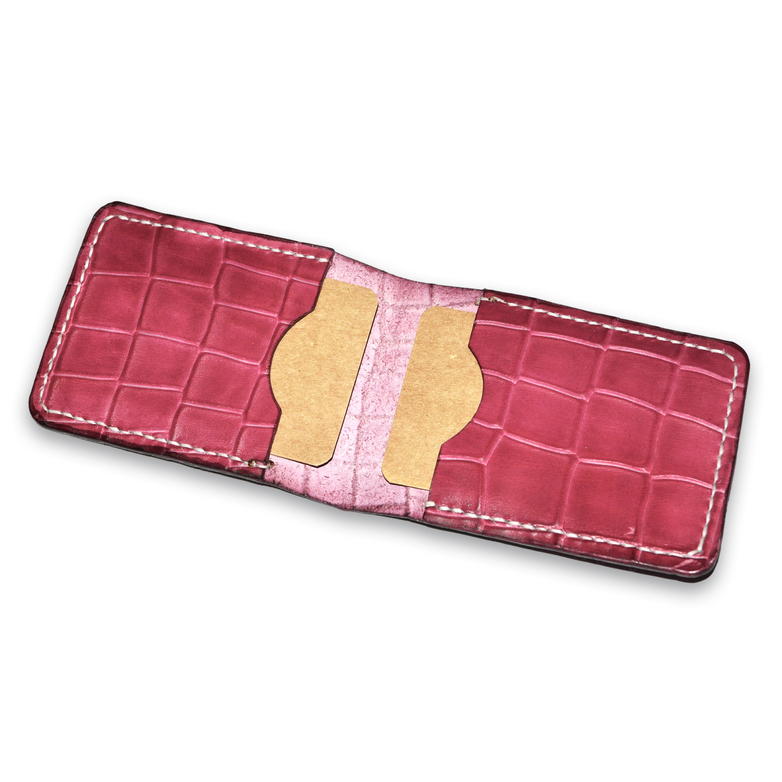 Portofelul minimalist pentru carduri este realizat din piele naturala de cea mai buna calitate presaj crocodil vopsita manual.Este lucrat manual si cusut cu ata cerata.  La interior cele doua buzunare pot depozita pana la 10 carduri. Are dimensiuni reduse si poate fi usor de depozitat.